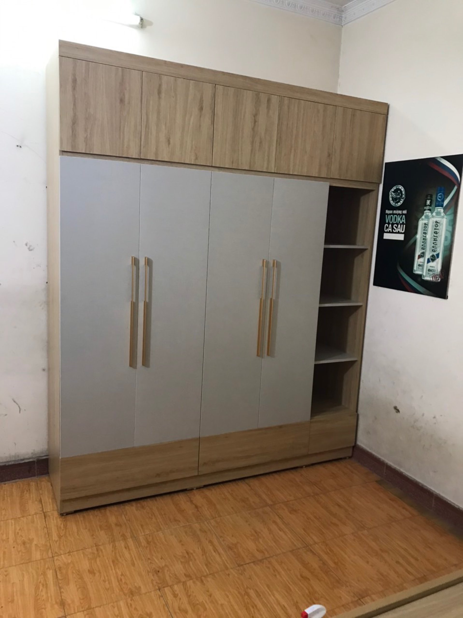 Kích Thước : 2000x2400x580 gô MDF cốt thường , Nẹp dày ,tay vát no line , bản lề giảm chấn ,day bi 3 lớp. Tay nắm dài- Giá bán lẻ:5300K