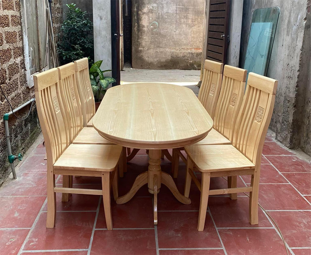 Bộ bàn ăn tròn gỗ sồi nga 6 ghế
